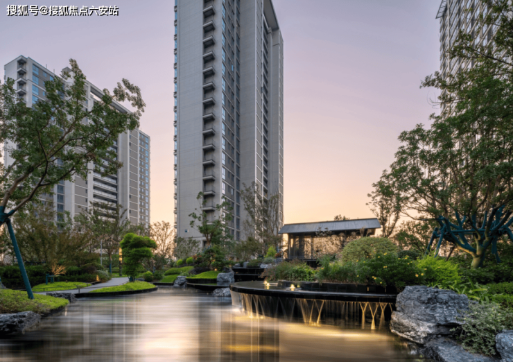 荣安的园林设计,讲究的是“移步异景”,中庭景观设石与水于一处,刚柔并济,既展现了古诗词般的韵味,又蕴含了深厚的文化底蕴。引水入园,聚水为财,水流潺潺,跌落出蕴含禅意的流线,不仅美化了环境,更彰显了尊贵的归家礼仪。景石、水景、雕塑与铺装,每一处细节都经过精心设计,映射出林隐放逸的雅致生活,让人仿佛置身于“久在樊笼里,复得返自然”的隐世桃源。