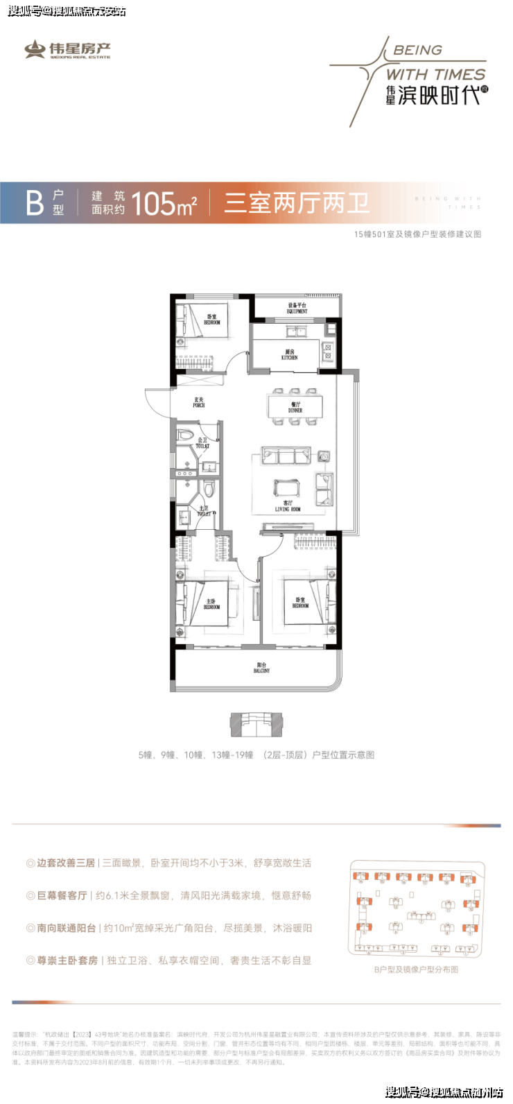 滨映时代府作为其高品质楼盘,规划有19幢10-17F小高层/高层住宅,提供95-130㎡的改善型住宅。