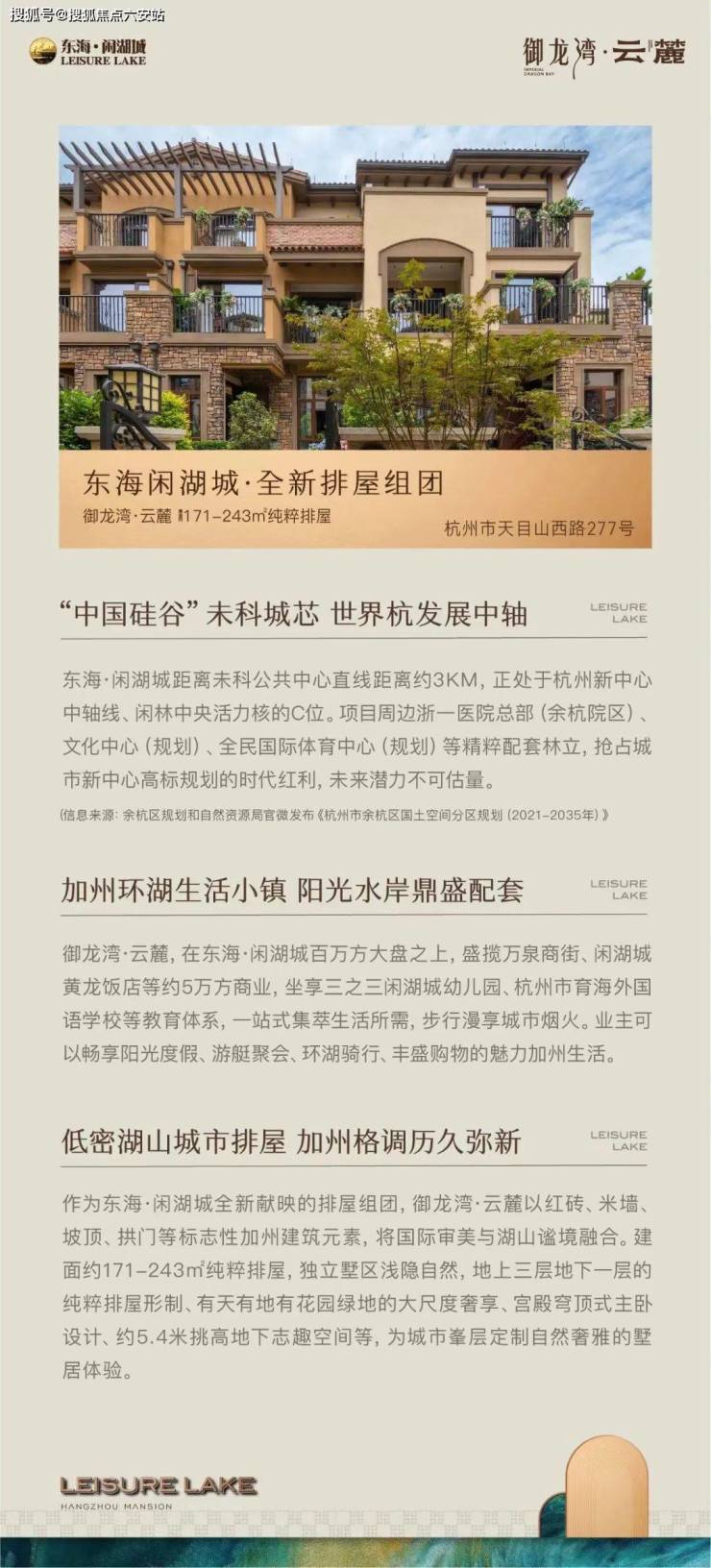 余杭东海闲湖城御龙湾排屋是一个集高品质居住、优美环境、丰富配套于一体的高端住宅项目。