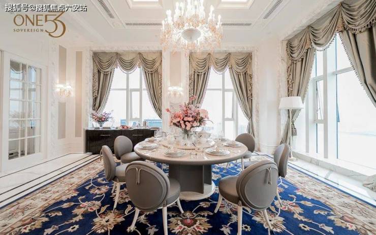 除此之外,ONE53 也是世界级资源倾注的天际产品,从建筑外立面到室内空间设计,再到灯光布局,均来自国际大师之手。以钱塘江为天然庭院,欧式宫殿中的高雅华贵在这罕见的层高和室内空间中极致呈现,这不仅是最能体现法式宫殿精神的顶豪作品,也是中国真正意义上的空中殿堂级豪宅作品。