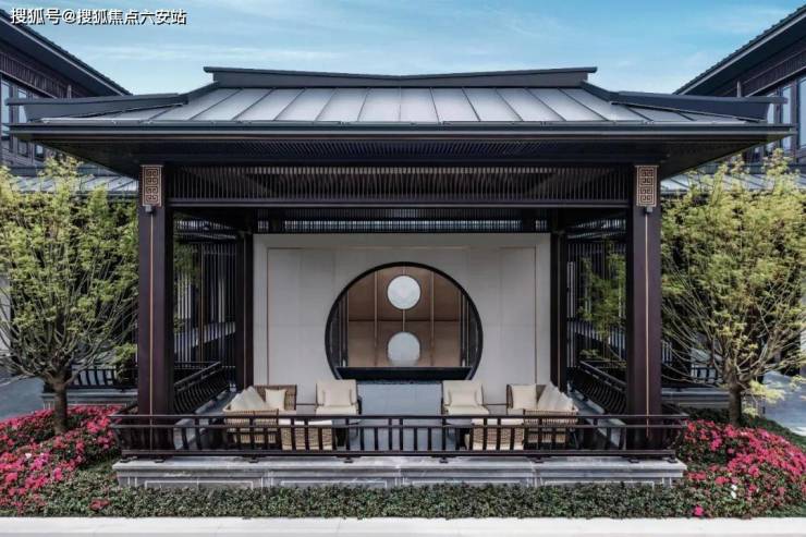 步移景异的景观结构:步入社区,开阔而诗意的四水归堂水庭映入眼帘,沿水庭回廊前行,可见烟染庭水榭、假山高立的中式园林、飞檐翘角的“四景”凉亭。社区内部通过建筑围合,形成“一院一景”的私密院落,四季植被错落有致。