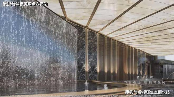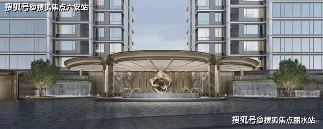 约60米阔绰馥香门头,宁波首次出现的山茶花花瓣造型,以黄金比例分割,满满的绿城美学造诣。搭配铜制雕塑+水景叠瀑,昭示感强烈。