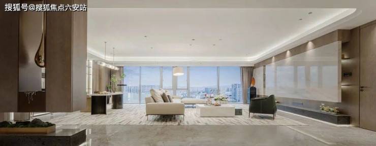 建面约300-305㎡精装大平层,以270°无界落地窗设计打造IMAX级环幕视野,部分高区房源可俯瞰亚运公园全景。南立面采用近90%玻璃幕墙,搭配浅灰石材与香槟金铝板,形似“倾泻银瀑”,重塑城市美学天际线。