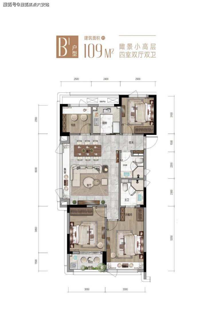 在户型尺度上,低密社区的优势非常明显。以小高层建面约109㎡的边套为例,扎扎实实做到了四房。这是充分考虑到了孩子上学后的住房需求,老人很可能要住过来照顾孩子,未来也可能有二胎,四房或许是标配。