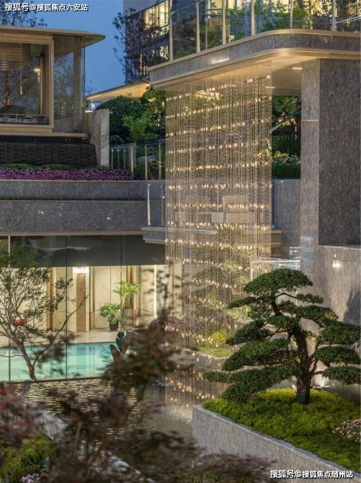 归家入口以约70米宽度、约9米高度的鎏金天幕打造,配合水景和迎客松,仪式感十足。业主可通过空中连廊或自动扶梯上到架空平台上的中心园林,享受创新三维归家体系。