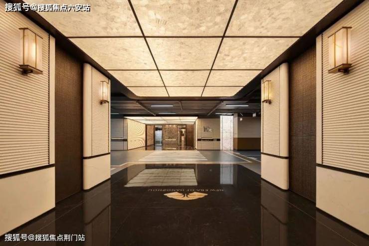 厅堂内大型水景艺术灯高悬于顶,以天为幕、气场大开,照映大理石地面,通体气派,传神东方宅邸的风骨。