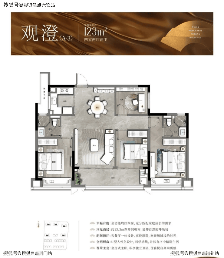 潮语臻境府的户型设计,打破了“4万+只能买刚需”的刻板印象,主力户型建面约123-168㎡四房,把“精质住宅”做到了极致。