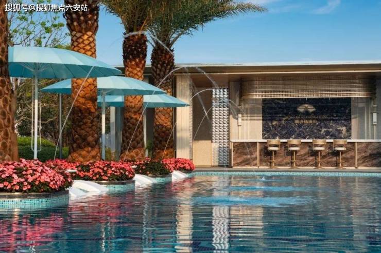潮语臻境府的泳池还叠加了多项以奢华酒店为标准的功能升级,定制的多色砖环泳池周边铺设,海派客厅充满了度假风。不同于一般的高低配小区,潮语臻境府采用了部分悬浮式抬板设计,为高层独创了更具观赏性和亲近性的立体交互景观。