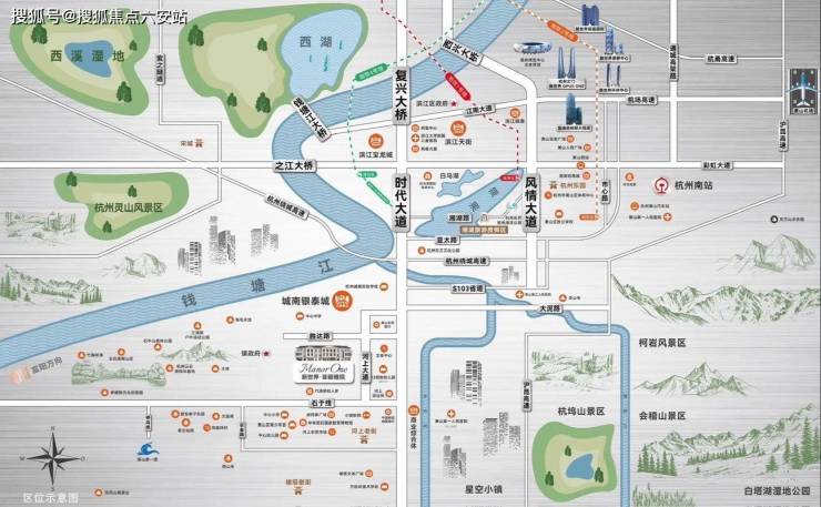 快速路网:紧邻时代大道高架,5个红绿灯直达滨江奥体、钱江新城,30分钟畅达武林商圈。