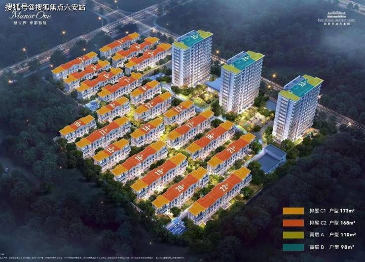 产品类型:法式排屋(100套)+墅景高层(155套),容积率1.05,绿化率30%,产权70年。