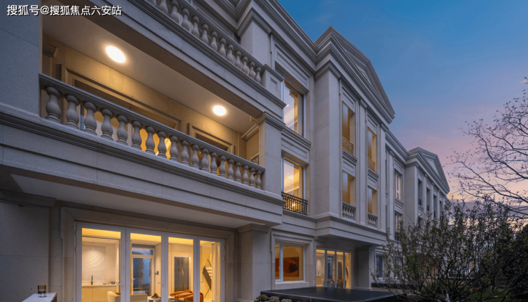 全干挂黄金麻花岗岩立面,复刻凡尔赛宫经典三段式设计,宝瓶栏杆、斜坡屋顶尽显法式优雅。