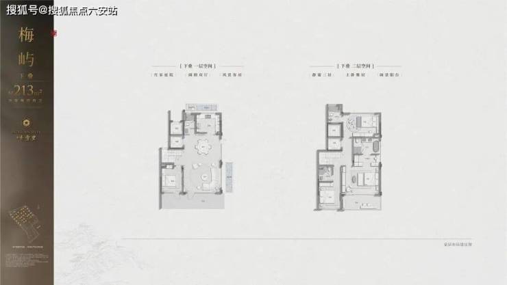 叠排:面积约213-291㎡,下叠带约60㎡私家庭院和5.7米挑高地下室,上叠享5层立体空间及南北双露台。
