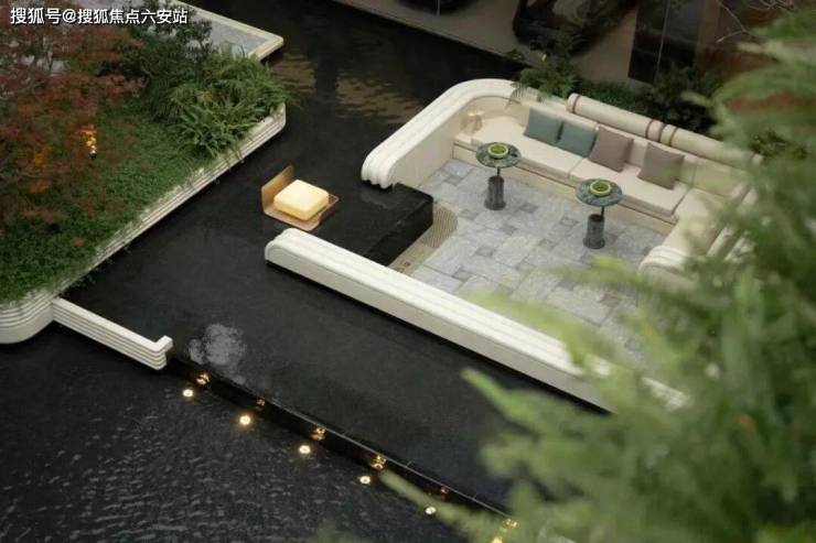 约1100㎡的下沉式会所是项目的“隐藏彩蛋”,其中的无界泳池设计通过可开闭玻璃门,实现开放式结构,与下沉庭院水系连成一片,游泳时与自然景观融为一体。