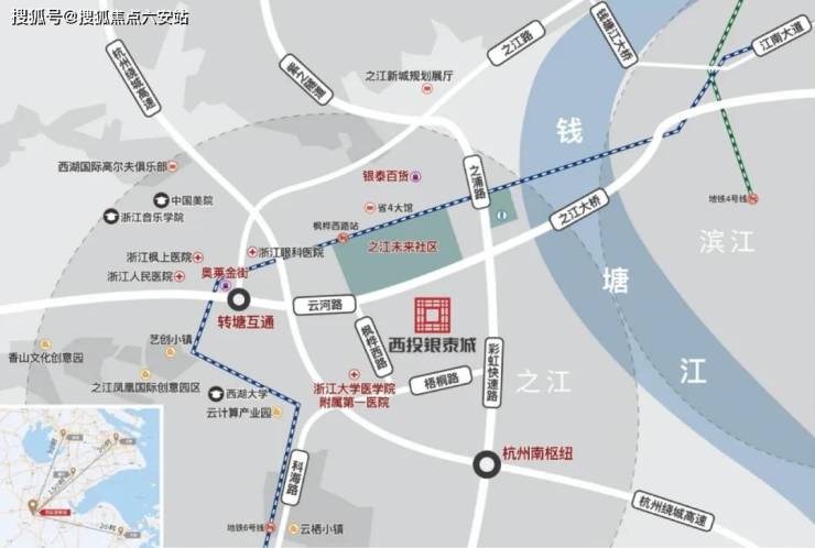 地铁:6号线、12号线(在建)双轨交汇,3站直达钱江新城,6站接入西湖文化广场。