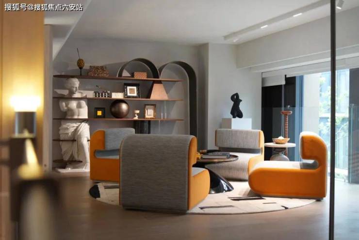跃象空间的客厅以高挑的天花板和复古金属吊灯为焦点,角落的雕塑艺术品营造出一种历史沉淀的美感。整个空间不仅保留了中世纪古典韵味的风貌,更融入了现代舒适与便利,让生活的烟火气与诗意并存。