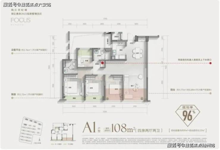 4房灵动布局(北面小房间面宽都有约2.4米),让建面约108㎡的户型,也可实现3.7米面宽开阔竖厅,让一个入门级小户型,也有约40㎡餐客厨空间。