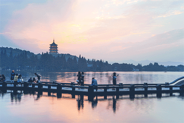 在室内环行一周,便可360°俯瞰杭州城,拔地而起的高楼、稠密的街市、墨色的西湖群山,尽收眼底。