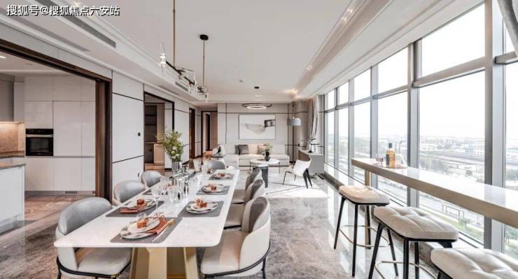 - **双景交融**:项目位于钱塘江“之”字形大转弯处,北靠五云山,南瞰15公里江岸线,270°环幕视野同步收藏西湖群山与钱塘江潮。