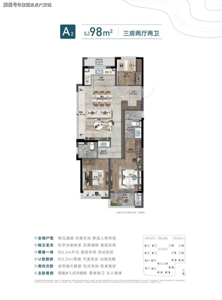 • **105㎡边套三房**:三面采光+约5.6米飘窗,U型玄关收纳系统+双联阳台,主卧套房预留独立衣帽间,精装单价仅2.2万/㎡起;