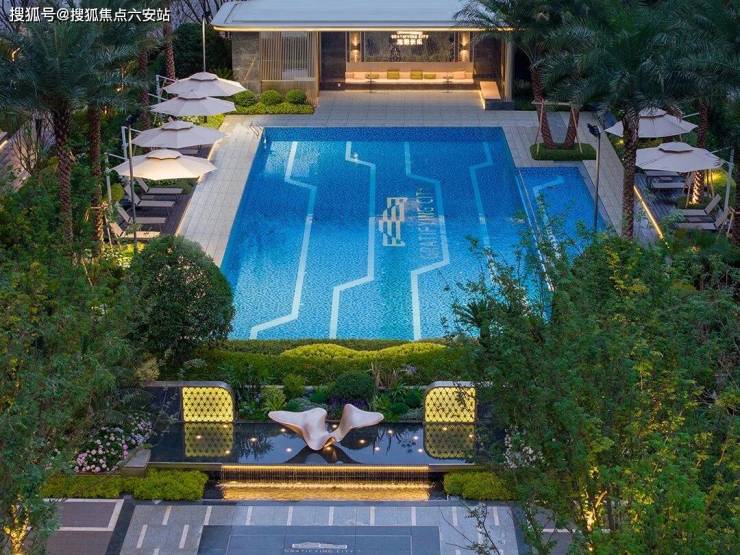 蓝宝石泳池:中庭景观泳池,为业主打造夏日清凉与社交空间;