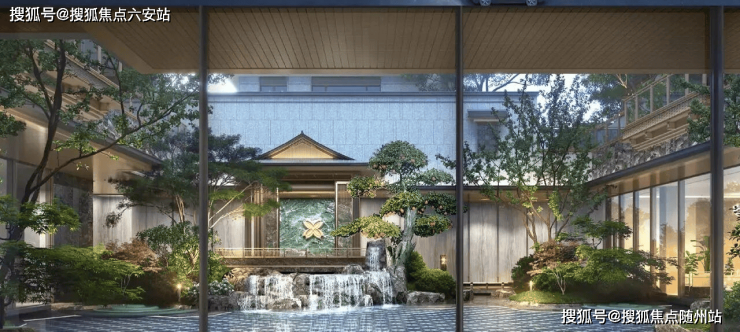 项目秉承建发房产标志性的“王府中式”风格,从三进归家礼制(府门仪仗、叠水园林、月洞门影壁)入手,营造出浓厚的归家仪式感。小区主入口采用歇山顶造型,形制媲美故宫乾清门,宽约53米(含景墙)、高近11米,气势恢宏。门两侧各置一块价值百万的蓝翡翠奢石,匹配高约2米(含基座)、重约600斤铜狮镇宅,搭配罗汉松迎客造型树,从中式门庭的尊贵感开始就把归家情绪层层递进。景墙别出心裁地采用高低墙的设计,犹如西湖起伏的群山,立体而饱满。这些设计元素是在建发此前高端项目基础上的进一步提升,彰显了项目的奢华定位和对东方美学的深刻理解。