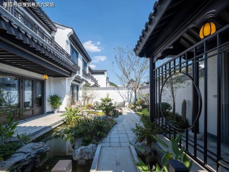 打造移步换景的江南园林雅境,呈现“堂、巷、院、宅”四进式礼序院落。,将千年东方礼序融于一院。结合框景、对景、漏景等丰富的造景设计,营造“移步换景、如在画中”之感,汇集杭州桃李春风、安吉天使小镇等蓝城经典中式合院营造经验之大成,专为当代名人雅士打造有天有地有花园的江南院落生活。