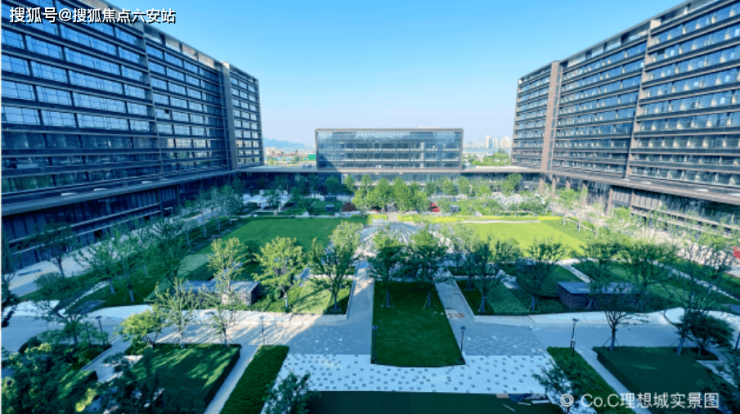 走进Co.C理想城,C区的围合式中央景观已基本呈现,超1万㎡的面积仿佛走进了一座城市公园,越过多功能折叠阳光草坪,中心镜面水景跃然眼前。