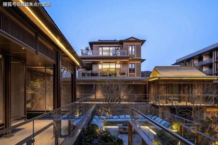 建筑立面:古今交融的诗意表达:外立面以香槟金铝板 为基调,搭配蓝眼睛石材与玻璃幕墙,融合传统歇山重檐、纳福悬鱼等元素,既保留宋式建筑的对称美学,又赋予现代建筑的轻盈通透。合院组团采用 三面庭院设计 ,L型景观面与环绕式檐廊,将超山梅影、丁山湖光引入每一扇窗景!