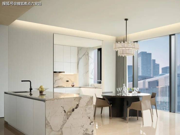 室内由 CCD(郑中设计事务所)打造,凸显了现代奢华和品味的精髓,从高档材料的运用到开放式的空间布局,270度“无柱转角落地客厅”站在Amber 98的样板间,奥体地标杭州之门近在咫尺,仿佛每一个建筑细节都触手可及。全屋通高的柜体,头顶的无边框灯具,将本就优越的层高直接拔高到了“奢享”的概念。