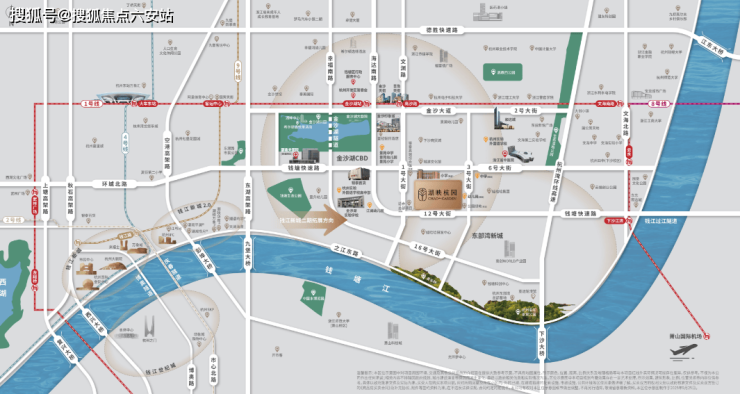 项目地处金沙湖CBD与东部湾新城交汇处,直线距钱塘江、金沙湖各约1.8公里,既享金沙湖成熟配套,又承接东部湾新城拥江发展红利,区域价值持续攀升。