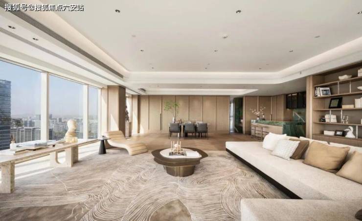 光是入户前的序厅,就相当于常见的125㎡住宅的厨房尺寸,通过2.45米高的字母装甲门入户,270度无界观景面,打造天幕俯览的都市观景台,将中轴景观一网打尽。
