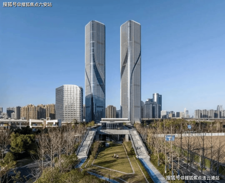 项目邀请国际知名大师团队EID ARCH首席建筑师姜平,通过双子超塔的建筑形象将智慧之门以抽象化的形式呈现出来。作为地块南侧城市轴线的终端, 双子塔的门户形象回应基地周边的城市空间关系,与整体的城市设计相协调。