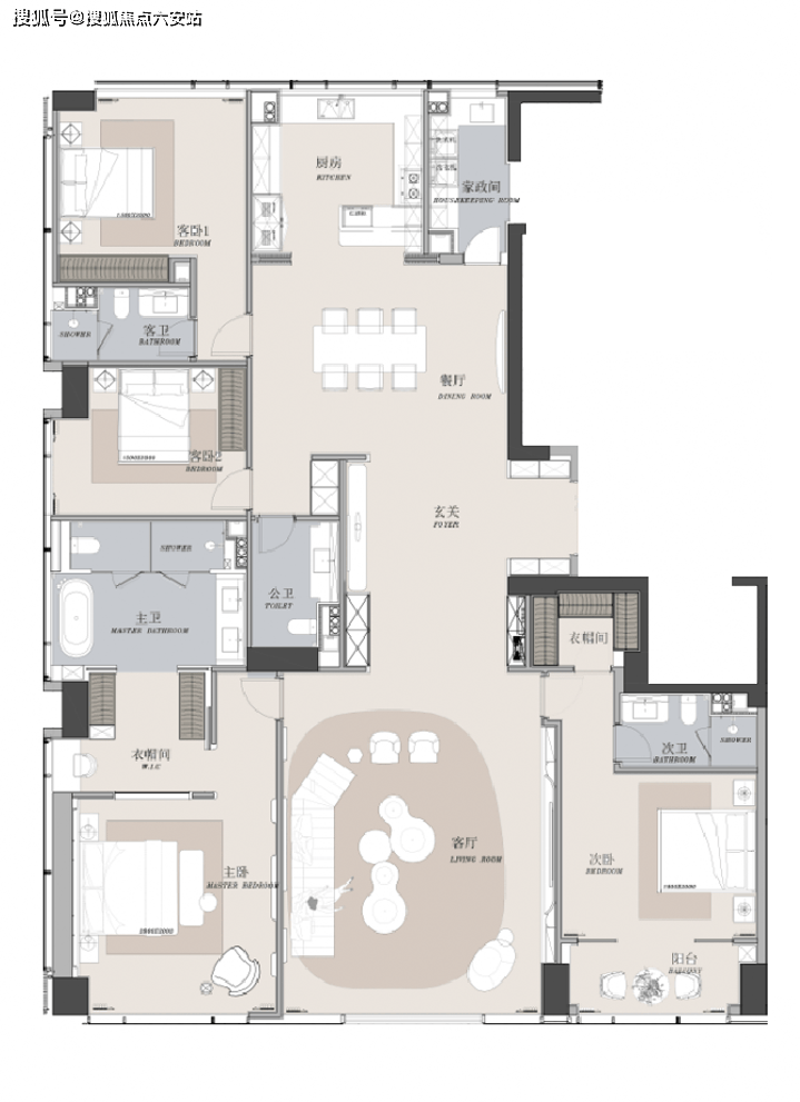主卧宽的不是尺度,更是格局,奢配独立卫浴和优雅衣帽间,尽显高阶人生气度。这不仅是一处居所,它更是居住者生活的艺术殿堂。在这里,诗意不再是遥不可及的幻象,而是融入日常的每一刻。主卧的雅致与主卫的奢华,转化为梦想栖息的港湾,也是为新贵们量身打造的品质空间,每一细节都诉说着生活的精致与独特,演绎出轻盈而华贵的空间艺术,升华优雅的格调。