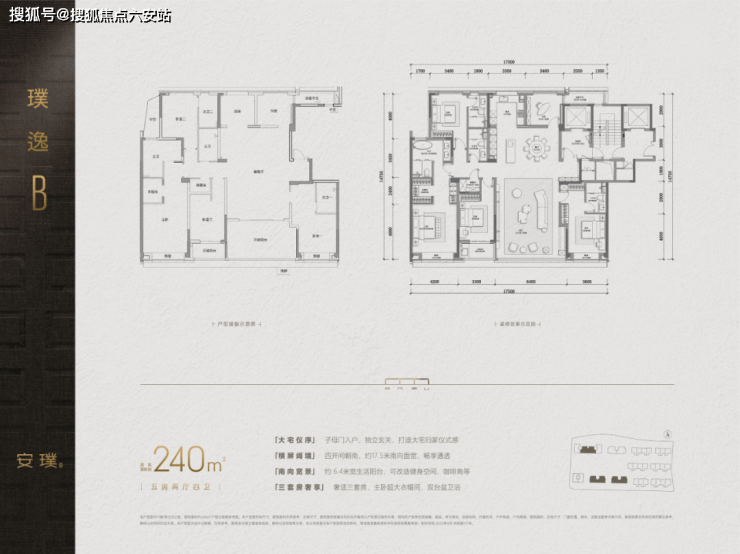 在户型设计上,安璞同样表现出众。约210㎡户型为五房三卫,其余户型均配备四卫,并实现三间套房布局,极大提升了居住的私密性与舒适度。