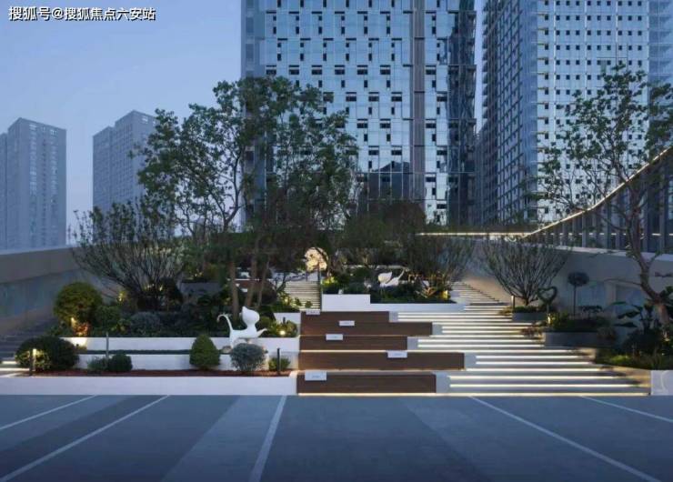 项目内的景观设计别出心裁,高楼间穿插着绿意盎然的景致,竖向变化丰富,为每一处空间赋予了独特的意义。