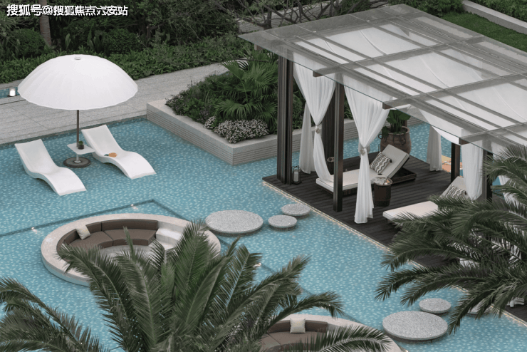 地上会所:涵盖静奢度假中庭“轻屿”(约6500㎡)、“全家总动员”游乐园(约3000㎡)。