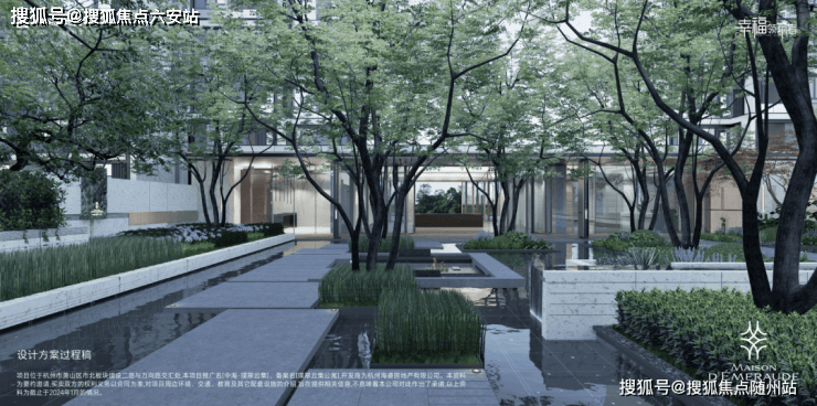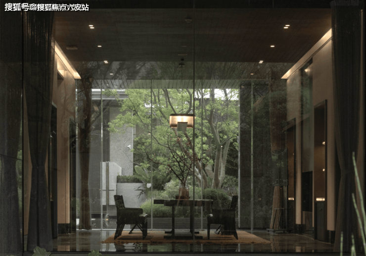 大堂的地下空间侧重实用性,约400㎡地下活动空间,包含健身房、儿童活动空间等。穿过大堂,则是一处泗水归堂的水景,不仅延续了豪门大宅的礼序,四季美景在这方小天地里总能流转出不同的模样,或晴时水光潋滟,或雨时四檐落珠,什么样的天气都不会破坏回家的好心情。