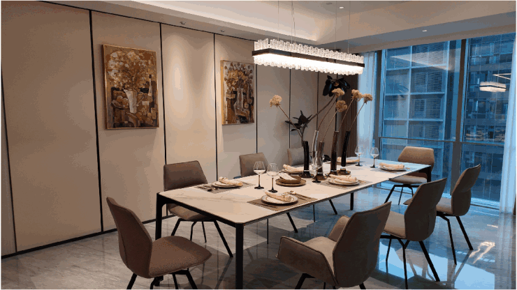 西投银泰城大平层特邀知名设计团队,以匠心独运的设计理念将现代美学与实用功能完美结合。大平层户型设计开阔大气,空间布局合理,无论是宽敞的客厅、私密的卧室还是全景落地窗的设计,都能让居民感受到家的温馨与舒适。