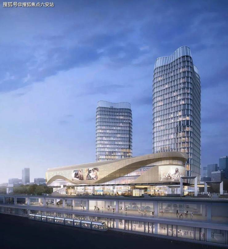 金属平纹屏凸显了塔楼顶部,这个金属屏形成的双曲塔冠,延续了塔楼的整体语言。塔冠的折叠造型使两座塔楼在杭州的天际线上形成独特的剪影。塔楼底部采用锥形造型,使其能够穿过商业裙楼,打造生长挺拔的造型。