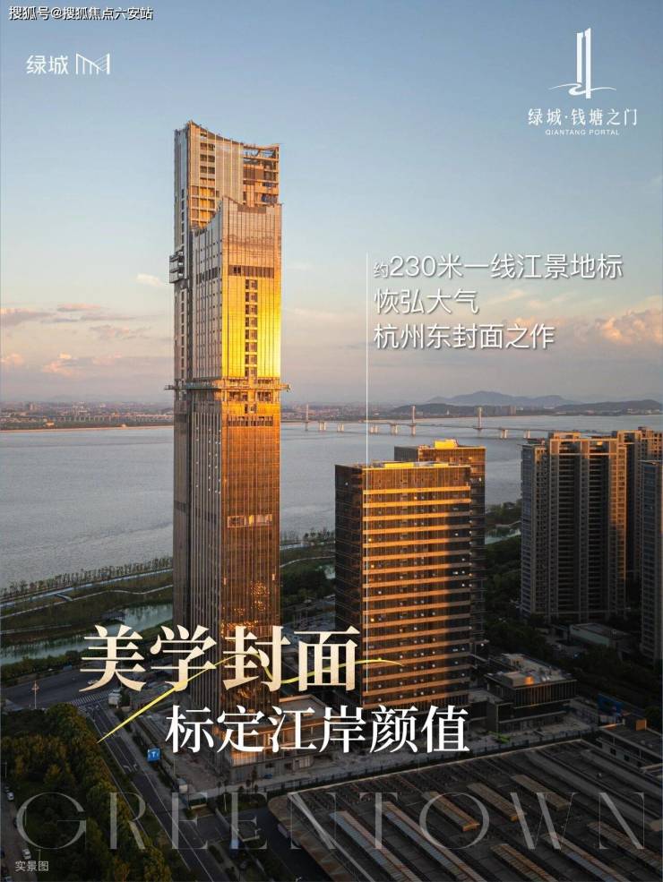 绿城钱塘之门| 天幕鎏金,封面的美学#江景恰绿城,人生几相逢约230米挺拔之姿,鼎立天际,。在钱塘江边铺展成一幅鎏金画卷。