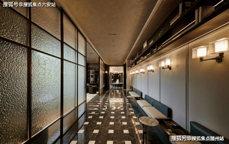 豪华酒店式门头,是整整用了一年时间才打磨出来的。香槟金吊顶,镌刻精致龙鳞祥云纹,细节处彰显高贵;通透质感的玻璃屏风与景观水系,两侧沿中轴展开,极致恢弘。