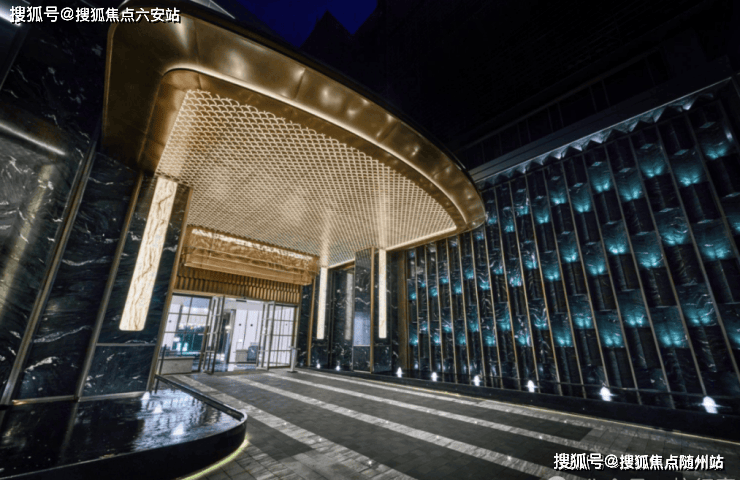 入户两侧设计禅意水系,寓意流水而兴;前厅中轴展开,巨幅琉璃质感屏风尽显尊崇;香槟金质感的龙鳞吊顶,寓意龙腾祥瑞,共同演绎东方观天地的大境哲学。建筑汲取宋风美学精髓,以对称设计、禅意水系、琉璃屏风等元素,构建"古而新"的现代东方意境。