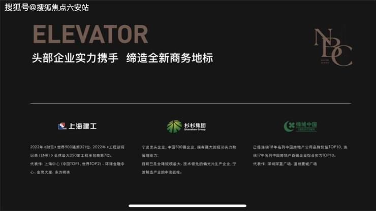 国内知名的地产企业,专注于高品质物业的开发,已经连续18年名列中国房地产公司品牌价值TOP10连续17年名列中国房地产百强企业综合实力 TOP10;以优质的产品和服务品质引领行业,于宁波共生长18年,在城市综合体、精品写字楼及高档住宅区领域拥有丰富经验,品质有口皆碑