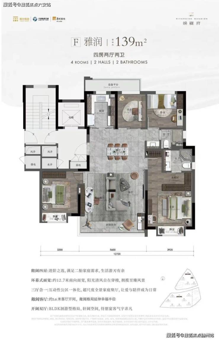 139户型亮点:5.6米大宽厅+四叶草户型,超高实用率+收纳+边套户型