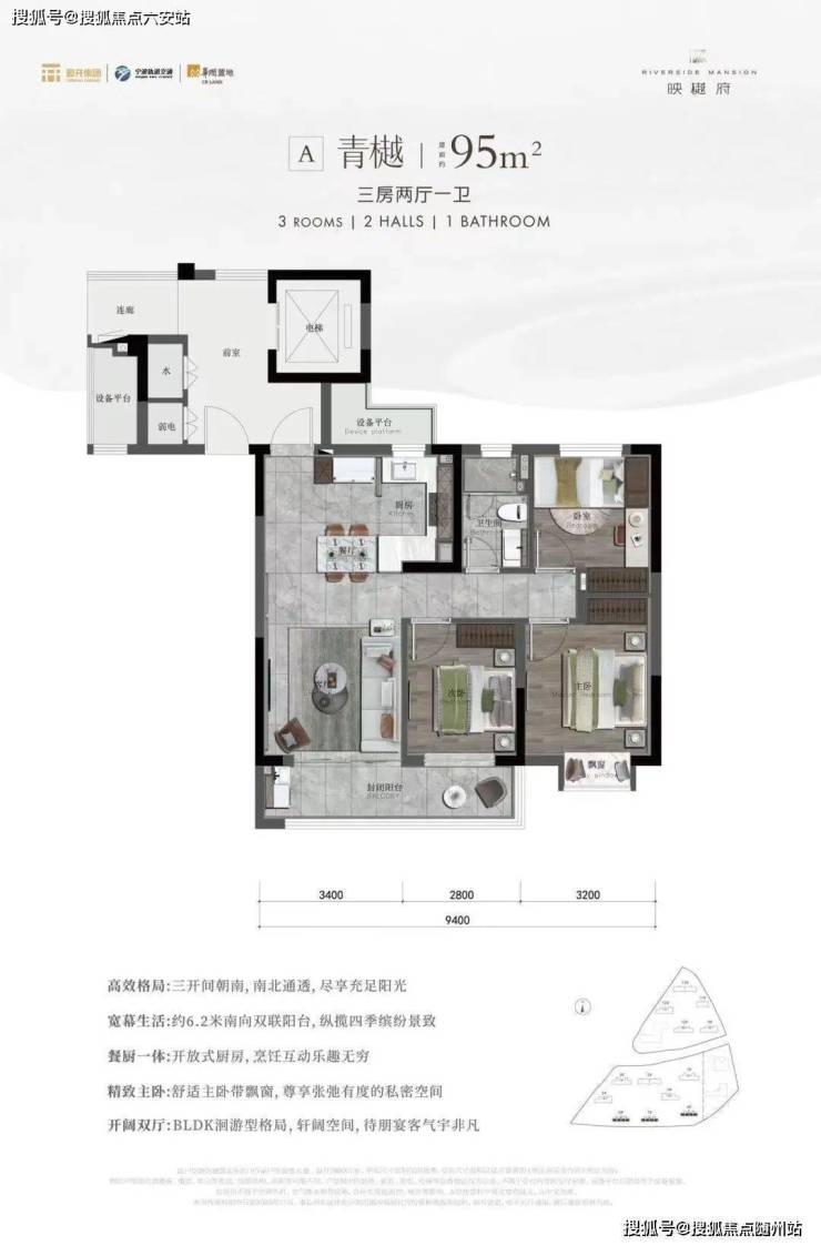 118/120户型亮点:超大边厅+超高实用率+边套户型