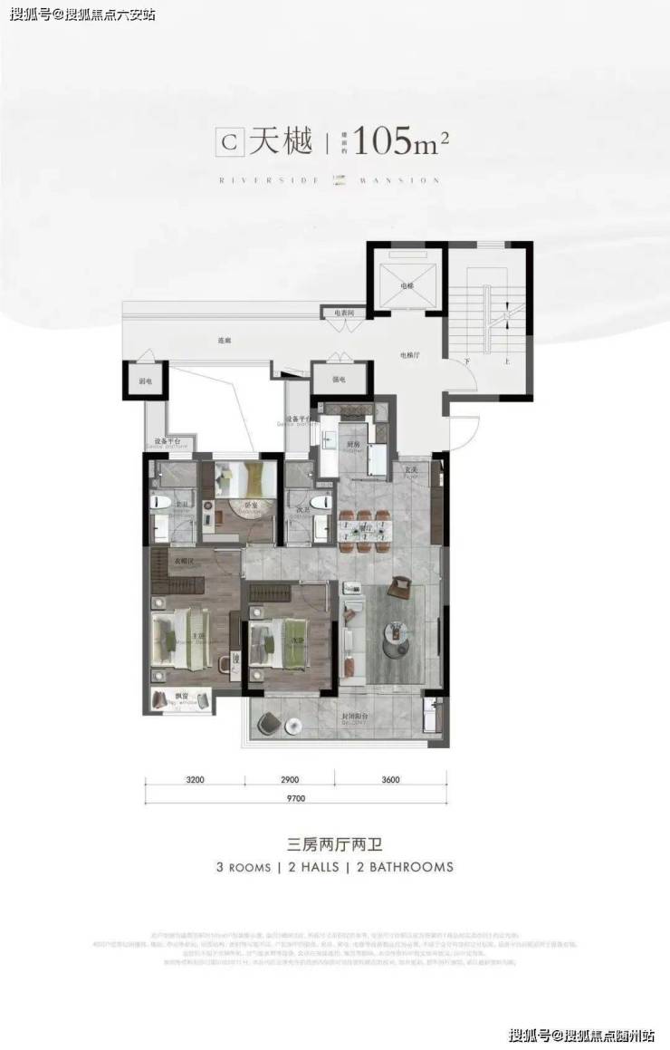 105户型亮点:5.2米大宽厅+超高实用率+收纳+边套户型