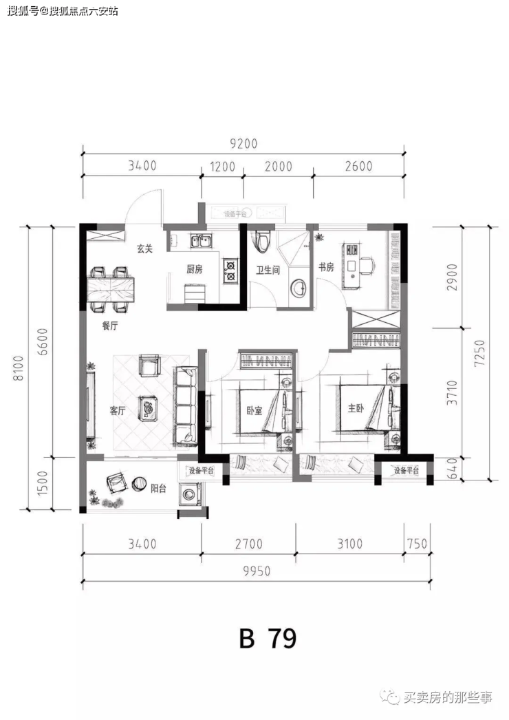 89㎡三房:南北通透,主卧套房+飘窗设计,得房率82%,总价120万内搞定!