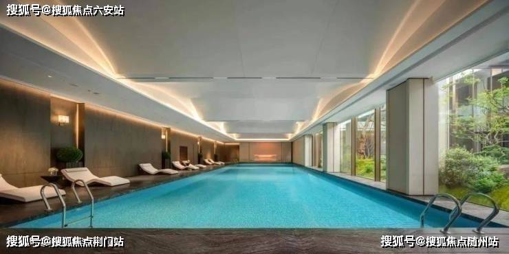 有恒温泳池,是以度假酒店为灵感设计的,通透的落地玻璃窗下与下沉庭院景观相互渗透,实现一年四季畅游的“游泳自由”。