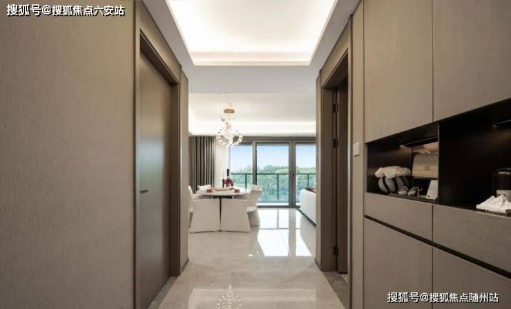 厨房采用金属边框双面柔光玻璃夹金纱门,寓意金玉满堂、福禄寿喜;客厅背景墙铺设“”玉树琼枝岩板,金色树枝纹路寓意玉树临风、开枝散叶;卧室内门采用真皮如意造型门锁,寓意手握如意、生活事事如意。