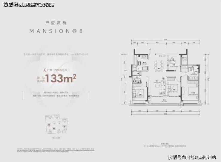 建面约133㎡四房两卫:四开间朝南+6.6米全景阳台,LDK一体化公区设计,适配二胎家庭或三代同堂。